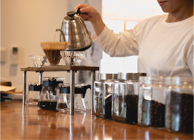 パティシエが心を込めてお作りする色とりどりのケーキは、カフェスペースでもお召し上がりいただけます。ショーケースからお好きなケーキをお選びいただき、珈琲や紅茶とともに、ゆっくりとお楽しみください。